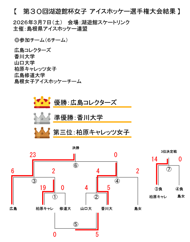第30回湖遊館杯争奪女子アイスホッケー選手権大会【大会結果】